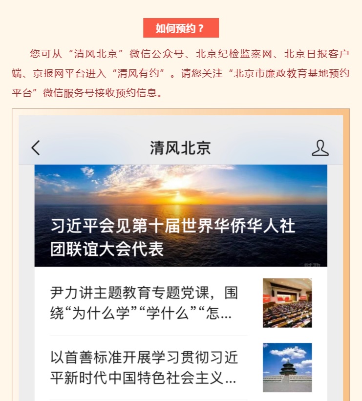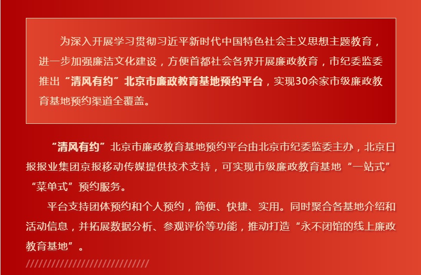 “清風有約”北京市廉政教育基地預約平臺上線了!