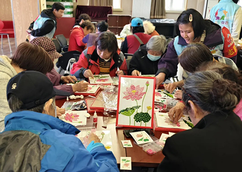 活動現場,大家以紐扣為“墨”,以畫布為“紙”,沉浸在紐扣畫的制作中。活動結束后,各黨支部書記將部分紐扣畫送到高齡老黨員家中,老黨員對支部的關懷表示感謝。