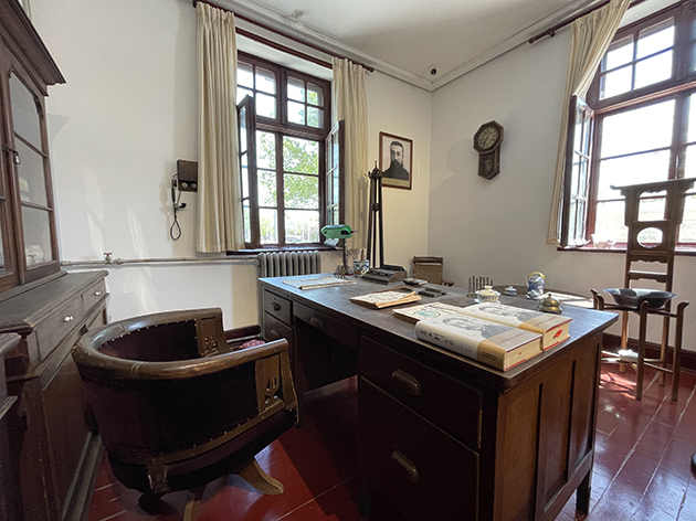 圖書(shū)館主任室即李大釗工作的辦公室,位于紅樓一層?xùn)|南角,分里外兩間,總面積約50 平方米。1918 年1 月,李大釗出任北京大學(xué)圖書(shū)館主任,8 月,北大紅樓建成后,李大釗組織北大圖書(shū)館由藏書(shū)樓搬遷至北大紅樓,直至1922 年12 月,李大釗任職圖書(shū)館主任時(shí)均在此工作。