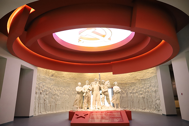 2001 年,沒有共產黨就沒有新中國紀念館依托曹火星當年創作詞曲的舊址建成,2006 年又新建占地1800 余平方米的新館,分為3 個展廳,與創作地原址形成當前開放的4 個主要部分。2011 年以來,在紀念館周圍又不斷建成巨幅黨旗、擎天柱、紅歌舞臺等附屬建筑。目前基本展陳以“人民的心聲 歷史的旋律”為主題,突出歌從史出、以歌頌史,展示歌曲200 余首、黨史故事80 余個,以革命歌曲為載體,展現中國共產黨的光輝歷程和歷史貢獻,弘揚中國共產黨的革命精神,闡釋“沒有共產黨就沒有新中國”的真理。堂上村退休老支書李增軍主講的“核桃樹下微黨課”也受到廣大參觀者的好評。