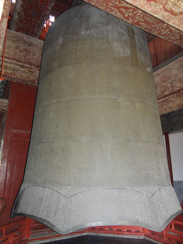 鑄于清康熙五十二年(1713年),出資鑄造人是清代著名貪官蘇克濟(jì)。據(jù)說(shuō)他當(dāng)官期間曾經(jīng)告發(fā)另一位官員貪污,還被康熙皇帝御賜楹聯(lián)夸贊其“正己風(fēng)群吏,精心理庶民”。然而,雍正皇帝繼位后,已經(jīng)退休的蘇克濟(jì)竟被查出在任期間收受賄賂白銀450 余萬(wàn)兩,最終被繩之以法。如今,蘇克濟(jì)出資鑄造的永泰寺銅鐘也成為了一口“警鐘”,用來(lái)警示為官者:切莫做兩面人。