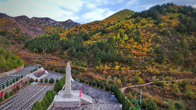 這座紀(jì)念碑是陵園的主體建筑之一,碑身面積152.8 平方米,高14.8 米,碑身用596 塊花崗巖石塊砌治而成,碑身正面鐫刻著聶榮臻元帥的題詞“光榮烈士永垂不朽”,碑身背面鐫刻著段蘇權(quán)將軍的題詞“英雄的戰(zhàn)士,堅強(qiáng)的人民,他們的不朽業(yè)績永垂不朽”。紀(jì)念碑高大雄偉,站在數(shù)百米外就可以瞻仰它的雄姿,青山相依,綠水為伴,象征著革命烈士的革命精神,代代相傳,萬古流芳!