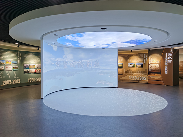 展覽館面積3000 平方米,一層展廳1300 平方米,以水庫建設發(fā)展為主線,通過老照片、場景還原、多媒體互動、聲光電配合等多種手段,講述密云水庫的前世今生,展示密云人民建設和守護密云水庫的奮斗華章,為守護綠水青山作出的貢獻與努力,向水庫的建設者和守護者致敬,弘揚不忘初心接續(xù)奮斗、不畏艱險戰(zhàn)天斗地、勤儉節(jié)約開拓創(chuàng)新、講政治顧大局無私奉獻、遵紀律守規(guī)矩聽指揮、干部群眾同吃同住同勞動等“密云水庫精神”。二層另設臨時展覽空間,總面積335 平方米,用以舉辦各種類型的文化展覽,開展主題學習、廉政教育活動等。